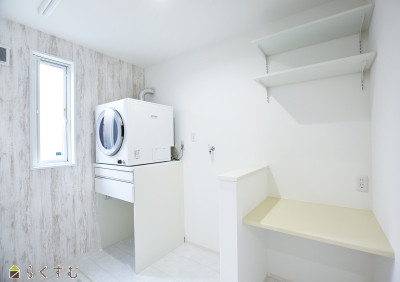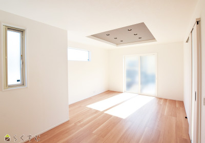 | ●LDK17.4帖は南東向きの明るい空間♪ ●ランドリースペースには幹太くんを設置。干す手間も省けて日々の家事も時短に♪ ●水まわりの掃除負担の軽減やお肌のうるおいを日々実感できるマイクロバブル給湯器♪ ●2階居室は全て2面採光・収納完備! | |||