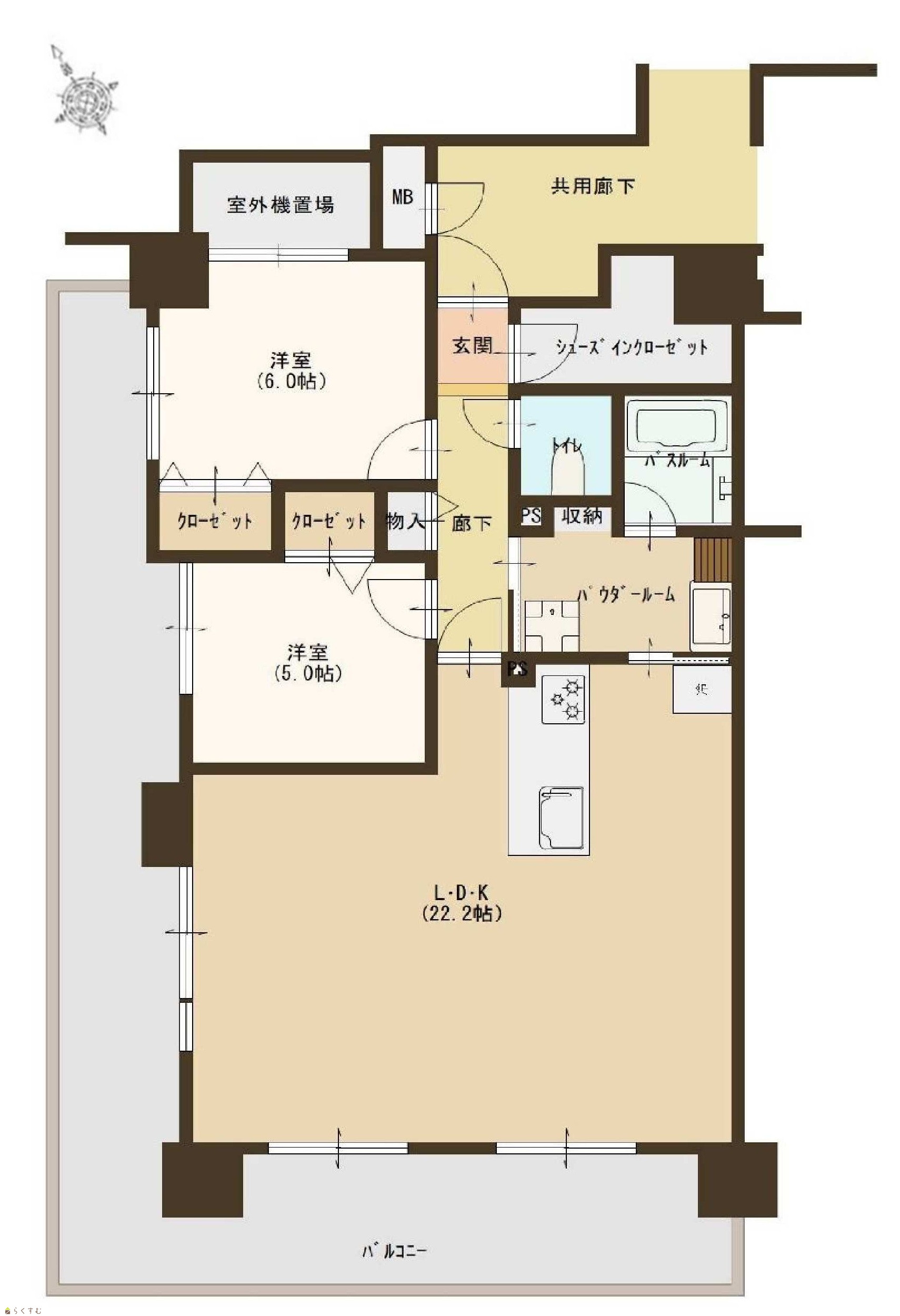 2LDK (洋室:6、5) LDK22.2 |