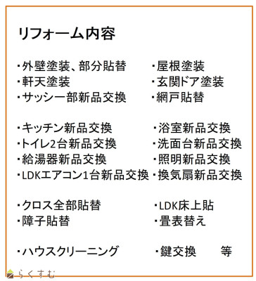 | 設備 | 日当り良好、閑静な住宅街、スーパー近く、LDK15帖以上、駐車2台可能、駐車3台以上可能、南向き、TVインターホン、複層ガラス、デインプルキー、システムキッチン、3口コンロ、追いだき機能付き、バス1坪以上、温水洗浄便座、トイレ2か所以上、シャワー付き洗面台、エアコンあり、24時間換気システム、省エネ給湯機、都市ガス、上水道、下水道、シューズBOX、内装リフォーム済み、外装リフォーム済み | ||