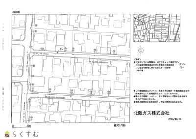 | 形状 | 間口 10.41m × 奥行 22.22m | 道路 | 前面道路6m、消雪パイプあり。 |