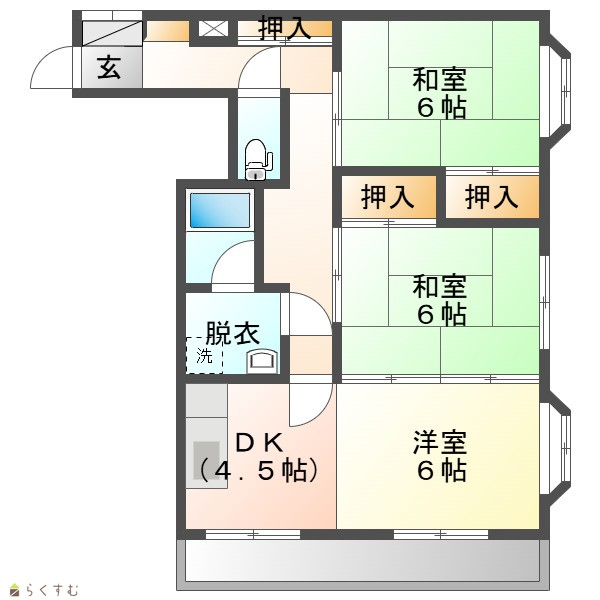 | 間取り | 3DK (和室:6畳、6畳) (洋室:6) | ||
