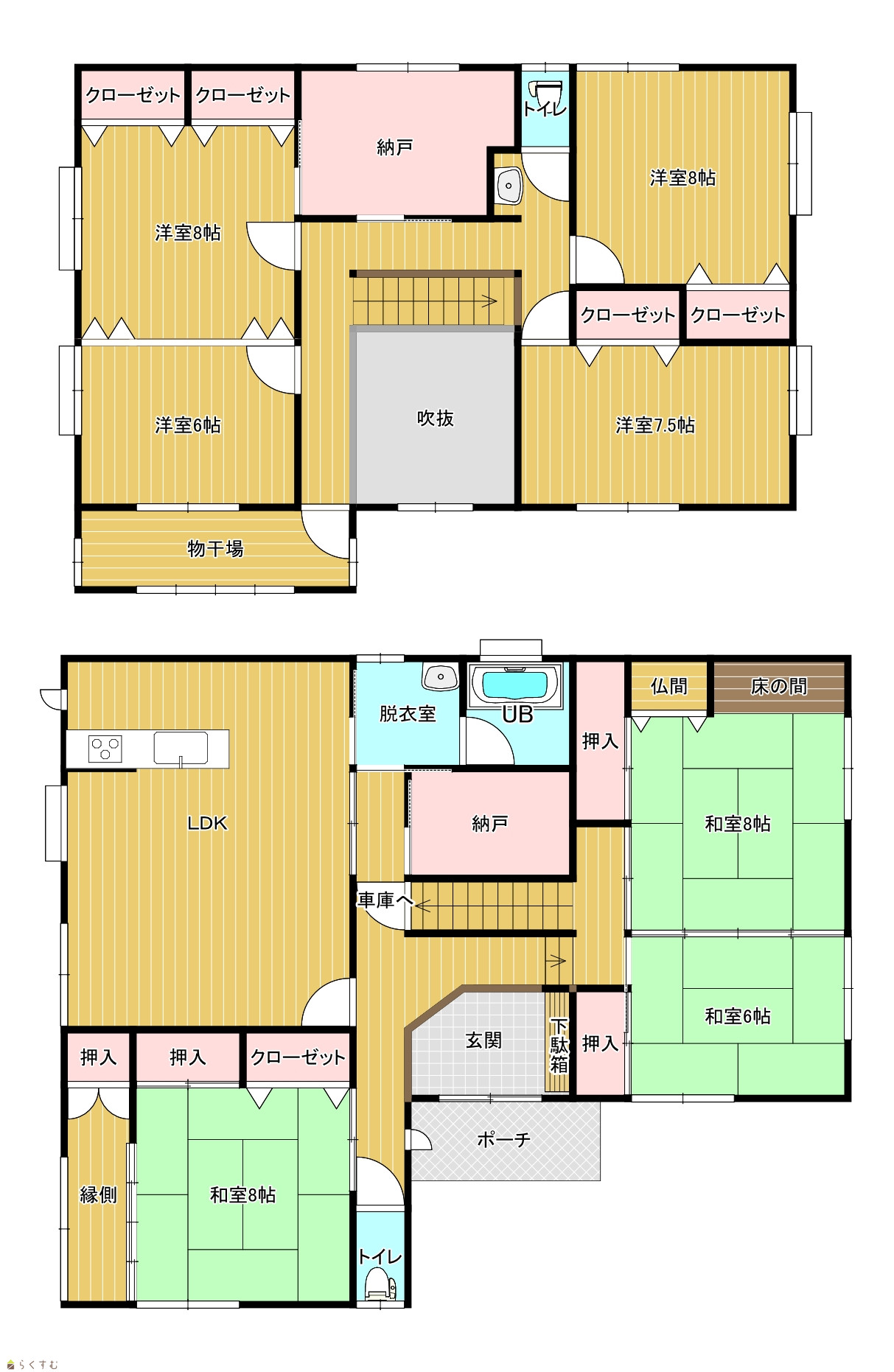 | 間取り | 7LDK (和室:8畳、8畳、6畳) (洋室:8、8、7.5、6) | ||
