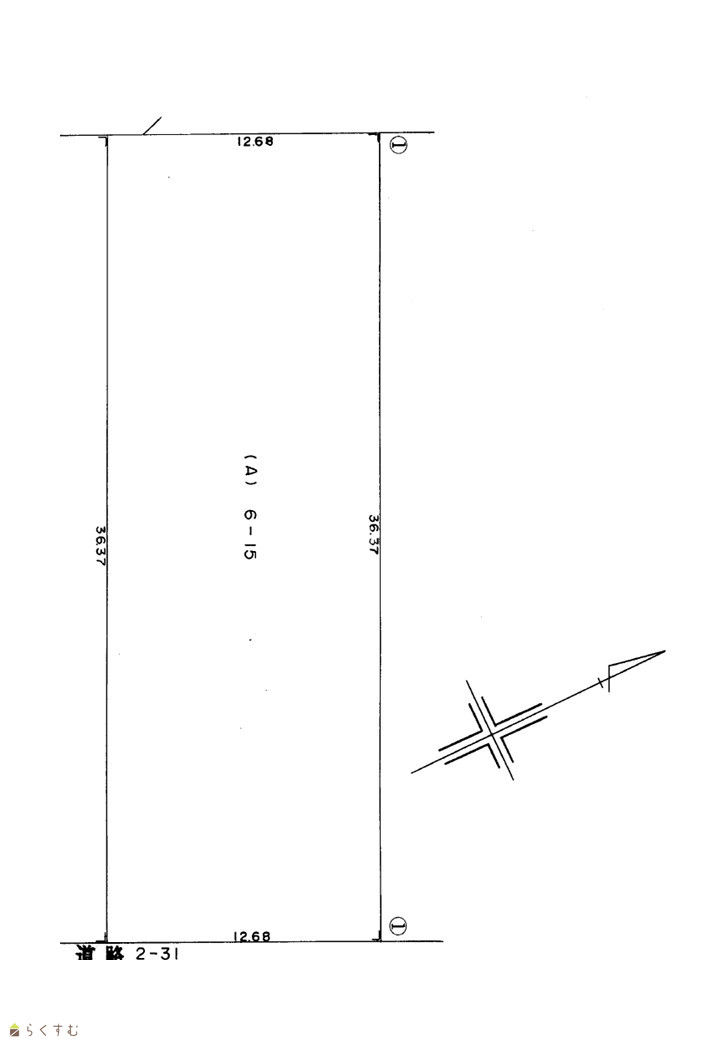 | 形状 | 間口 12.68m × 奥行 36.37m | 道路 | 東側/公道/接道幅員約12m |