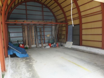 雪に強い丸屋根のシャッター付きガレージが付いています