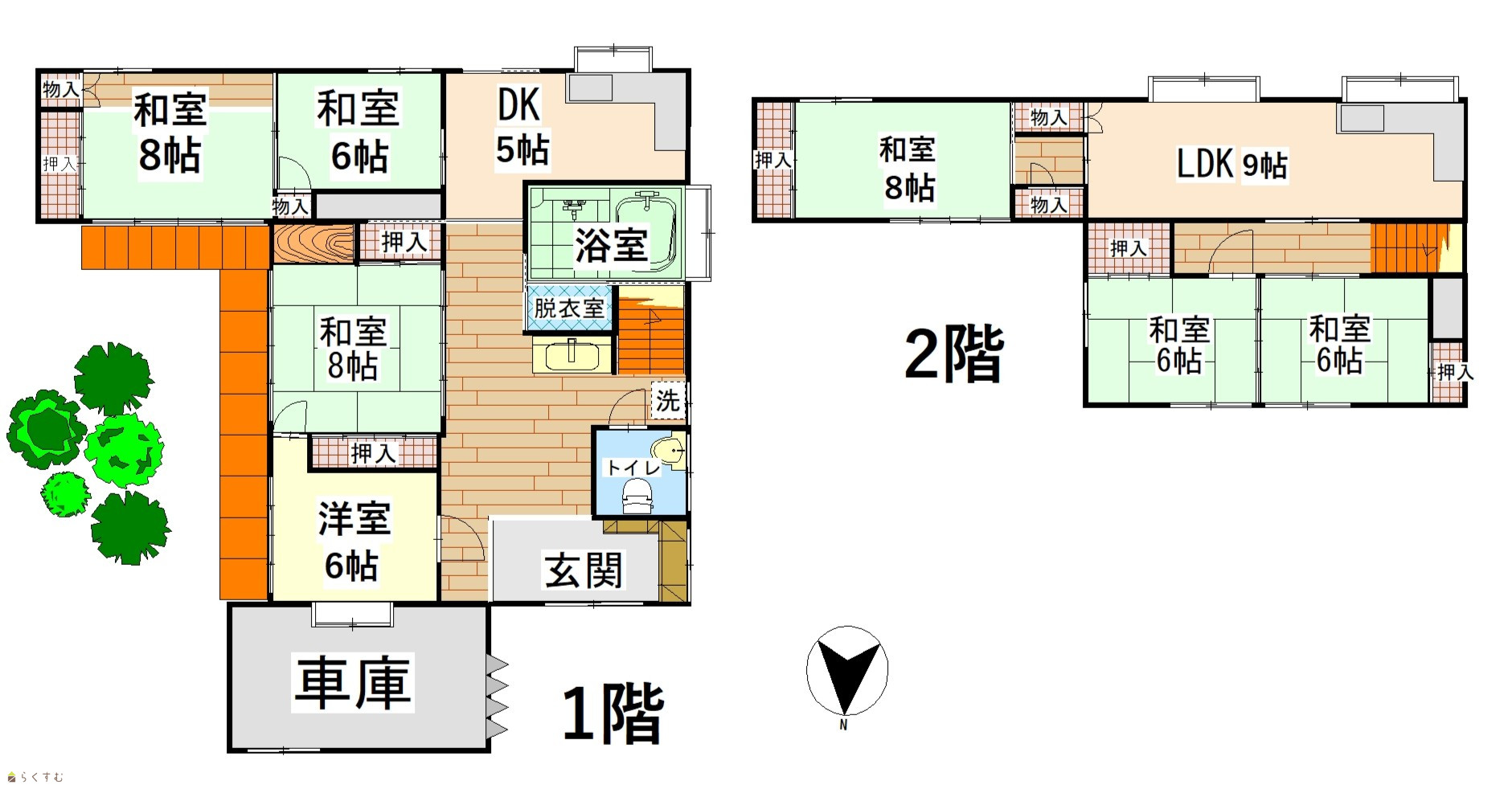 7LDK (和室:6畳、8畳、8畳、6畳、6畳、8畳) (洋室:6) LDK9、DK5 |