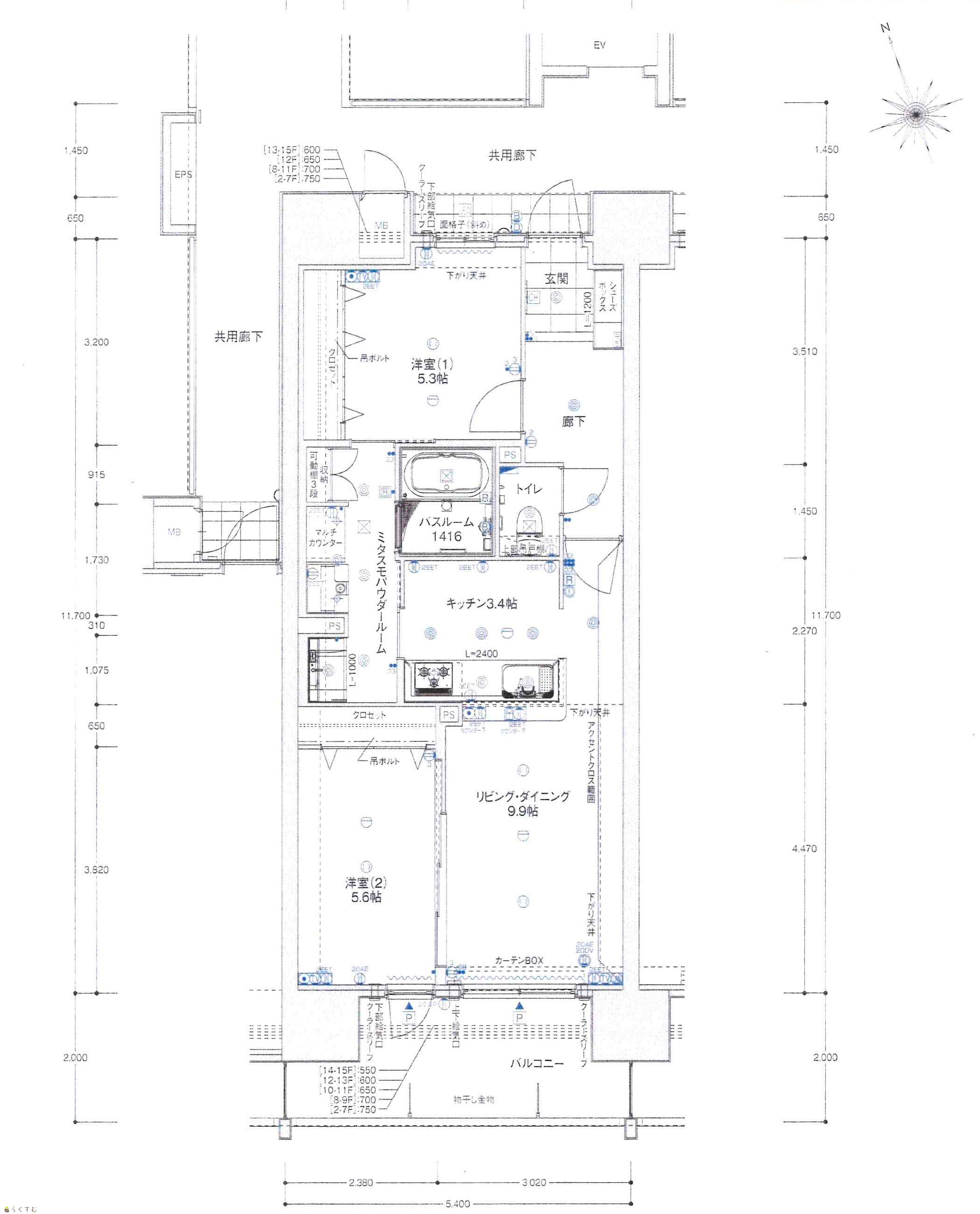 2LDK (洋室:5.6、5.3) LDK13.3 |