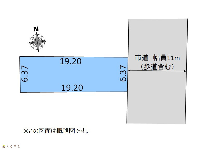 | 形状 | 間口 6.37m × 奥行 19.20m | 道路 | 東側市道11m |