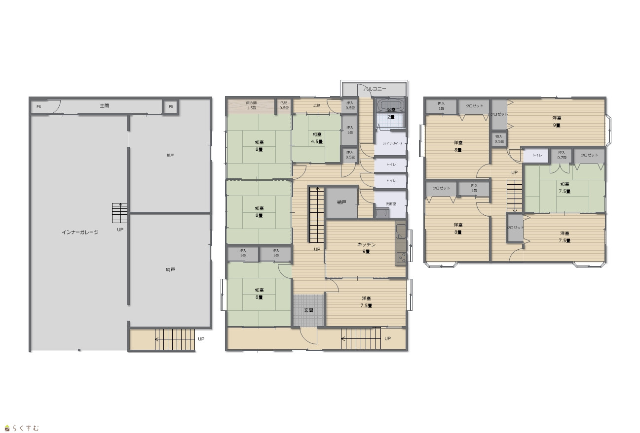10DK (和室:8.0畳、8.0畳、4.5畳、7.5畳、7.5畳) (洋室:8.0、7.0、8.5、8.0、9.0) DK8.75 |