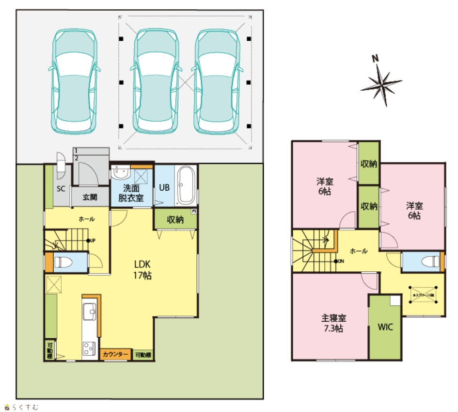 3LDK (洋室:7.3、6、6) LDK17 |