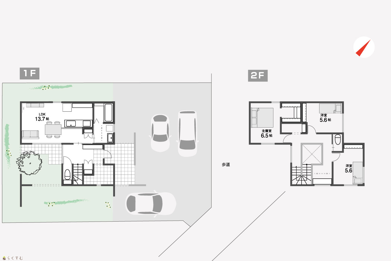 3LDK (洋室:6.5、5.6、5.6) LDK13.7 |