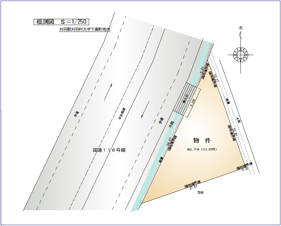 | 形状 | 間口 40m × 奥行 27m | 道路 | 国道116号線 |