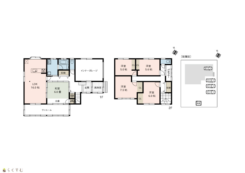 5LDK (和室:6.0畳) (洋室:7.5、6.0、5.6、5.0) LDK16.0 |