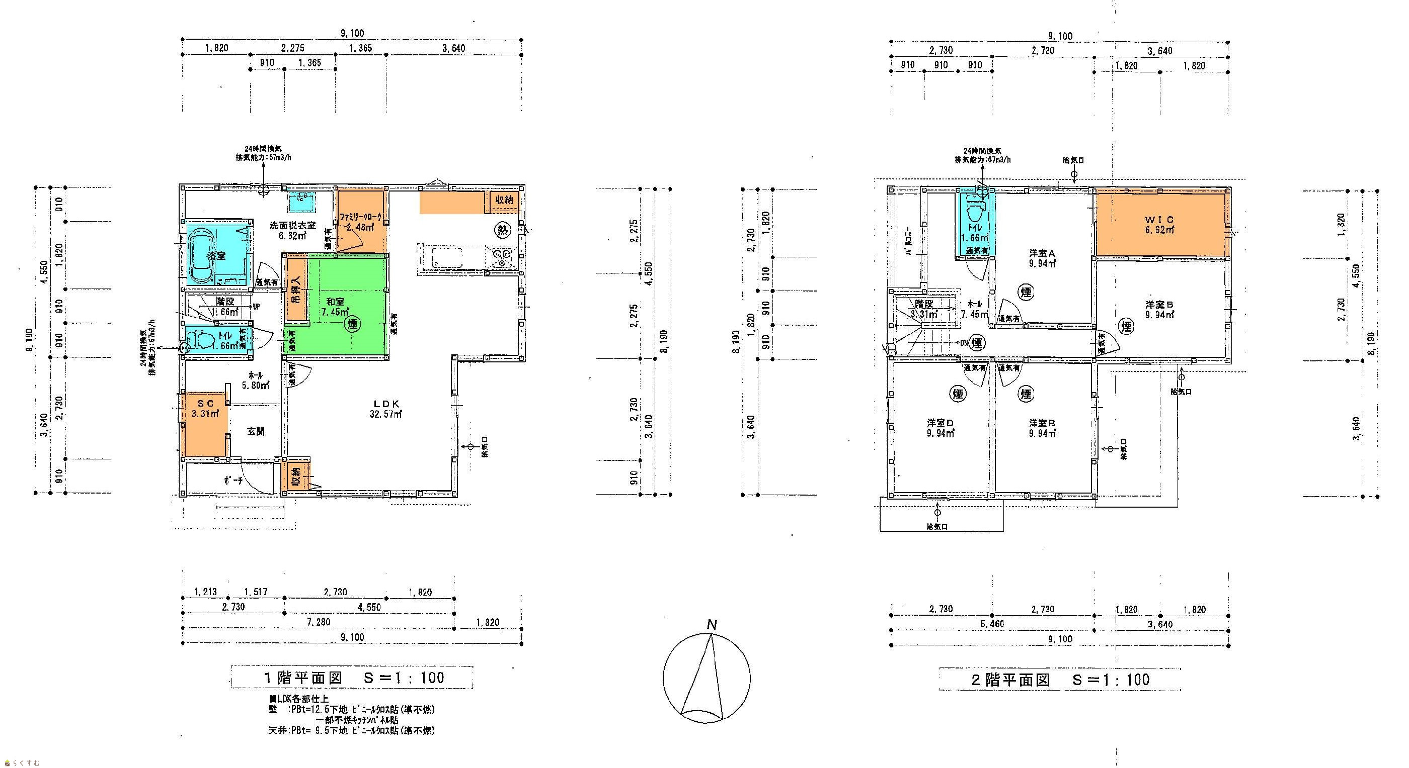| 建物面積 | 1階 65.41㎡/ 2階 58.79㎡/ 計 124.2㎡ /37.57坪 | ||