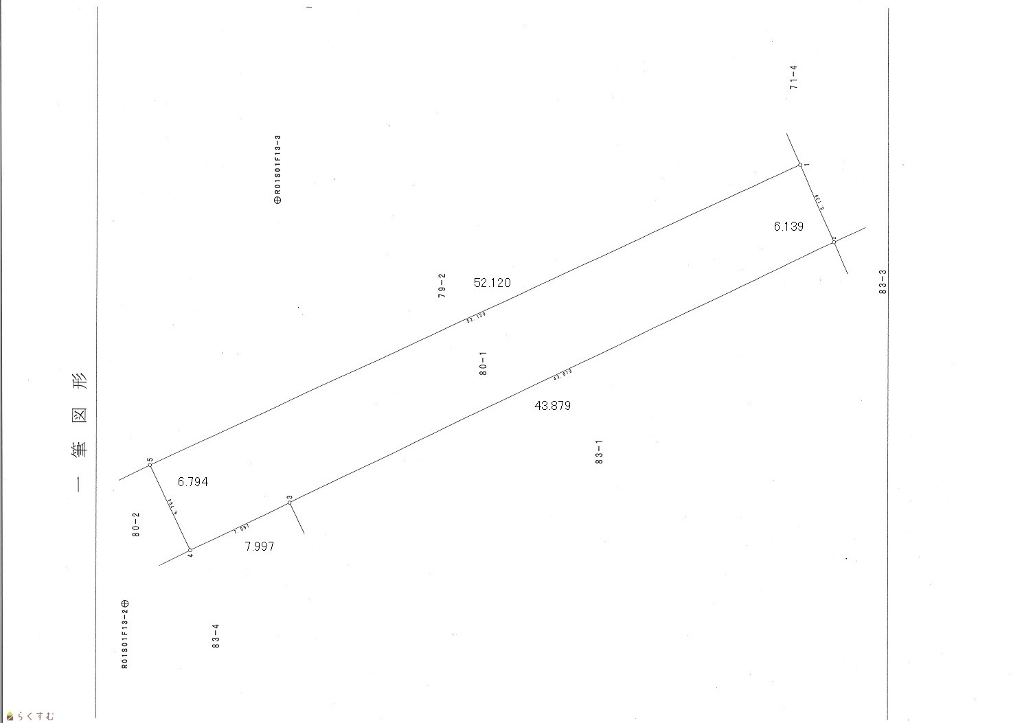 | 形状 | 間口 6.13m × 奥行 52.12m | 道路 | 国道291号線に面する |