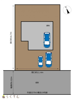 | 形状 | 間口 11.4m × 奥行 16.7m | 道路 | 南西側 公道 6.02m |