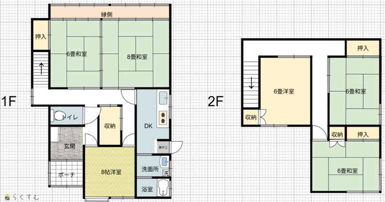 | 間取り | 6DK (和室:6畳、6畳、6畳、6畳、8畳) (洋室:8) | ||