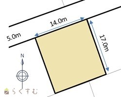 | 形状 | 間口 14m × 奥行 17m | 道路 | 北西:市道(幅員:5m) |