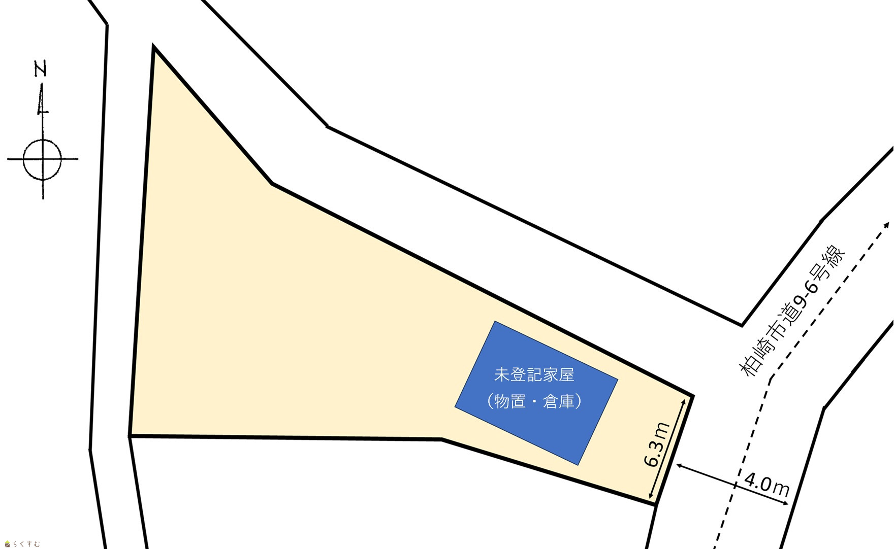 | 形状 | 間口 6.3m | 道路 | 柏崎市道9-6号線(2項道路) |
