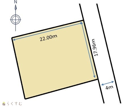 | 形状 | 間口 17.96m × 奥行 22.00m | 道路 | 東:市道(幅員4m) |
