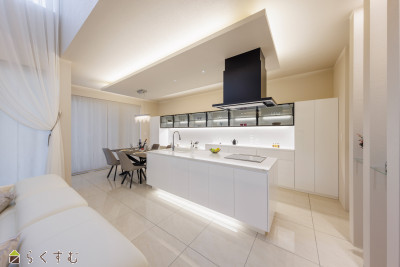 | 設備 | 整形地、前面道路6m以上、日当り良好、閑静な住宅街、スーパー近く、長期優良住宅、耐震構造、瑕疵担保保険付き、建物確認・完了検査済証あり、フラット35S適合、LDK15畳以上、天井高2.5m以上、駐車場2台以上、南向き、複層ガラス、ディンプルキー、システムキッチン、カウンターキッチン、IHクッキングヒーター、食器洗浄乾燥機、追いだき機能付き、バス1坪以上、温水洗浄便座、床暖房、24時間換気システム、全室エアコン、オール電化、省エネ給湯、高気密高断熱住宅、ウッドデッキ・テラス、ルーフバルコニー、上水道、下水道、電気、ウォークインクローゼット、全居室収納あり、シューズBOX、LAN端子、照明器具付き、即引き渡し可能 | ||