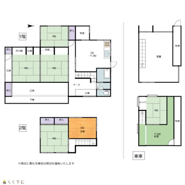| 備考 | ※契約不適合免責。 ※現況渡し。 ※2025年6月に水回りをリフォームしています。 ※2025年4月インスペクション実施済み ※車庫:平成11年建築 1F・39.66㎡/2F・40.62㎡ 電動シャッター ※車庫未登記にて引き渡し ※ロッテアライリゾートまで車で19分 |