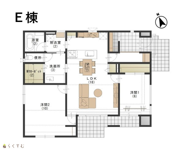 2LDK (洋室:10、6) LDK18 Wクローゼット2帖 |