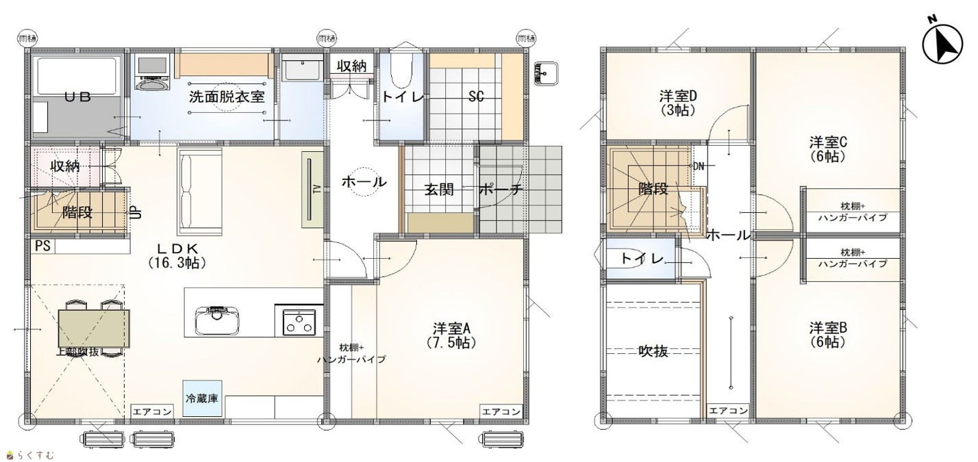 4LDK (洋室:7.5、6、6、3) LDK16.3 |