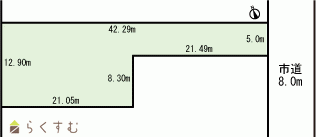 | 形状 | 間口 5m × 奥行 42.29m | 道路 | - |