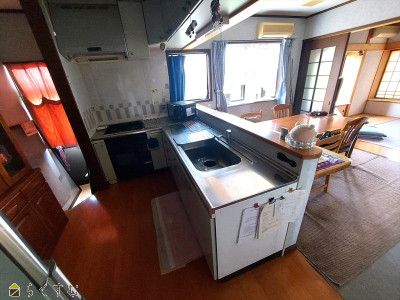 | 設備 | 日当り良好、閑静な住宅街、新築時図面あり、駐車3台以上可能、南向き、システムキッチン、カウンターキッチン、3口コンロ、追いだき機能付き、浴室乾燥機、バス1坪以上、温水洗浄便座、トイレ2か所以上、シャワー付き洗面台、エアコンあり、LPG、上水道、下水道、シューズBOX、2世帯向き、即引き渡し可能、田舎暮らし | ||