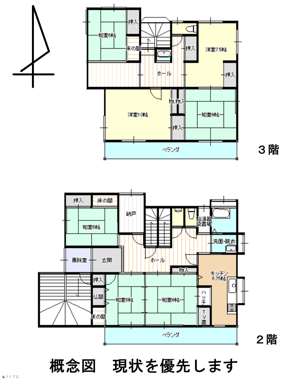 6K (和室:6畳、6畳、6畳、8畳、8畳) (洋室:7.5、10) K6.75 |