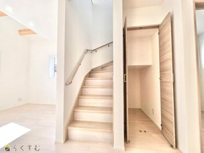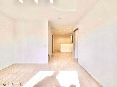 2025年12月完成。国道8号線へのアクセス良好!スーパーも徒歩4分で買い物にも便利な立地! 吹抜けで2階とつながるリビング、どこにいても家族の気配を感じられます