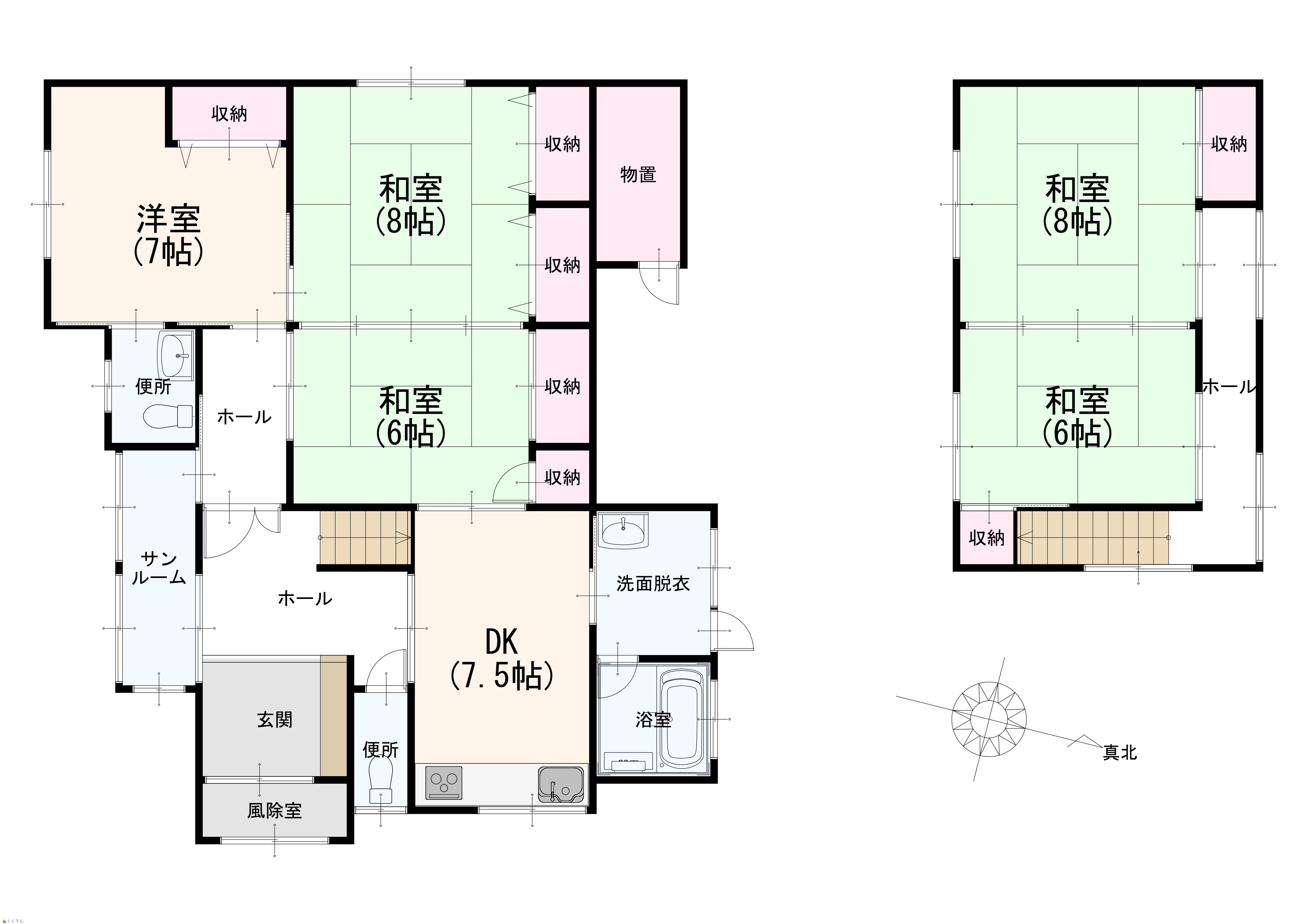 5DK (和室:8畳、8畳、6畳、6畳) (洋室:7) DK7.5帖 |