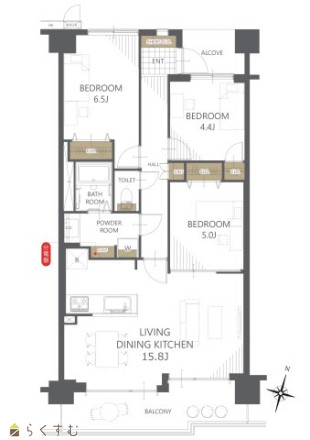 3LDK (洋室:6.5、5、4.4) LDK15.8 |