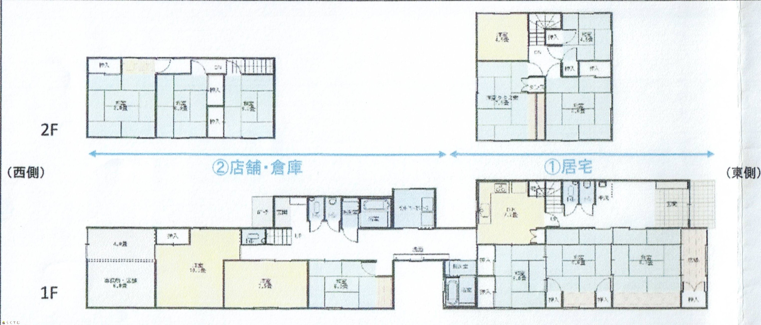 13DK 6部屋+食堂+厨房+脱衣所+浴室+トイレ 店舗部分+6部屋+洗濯室+浴室+トイレ 現況有姿での売買となります。 |