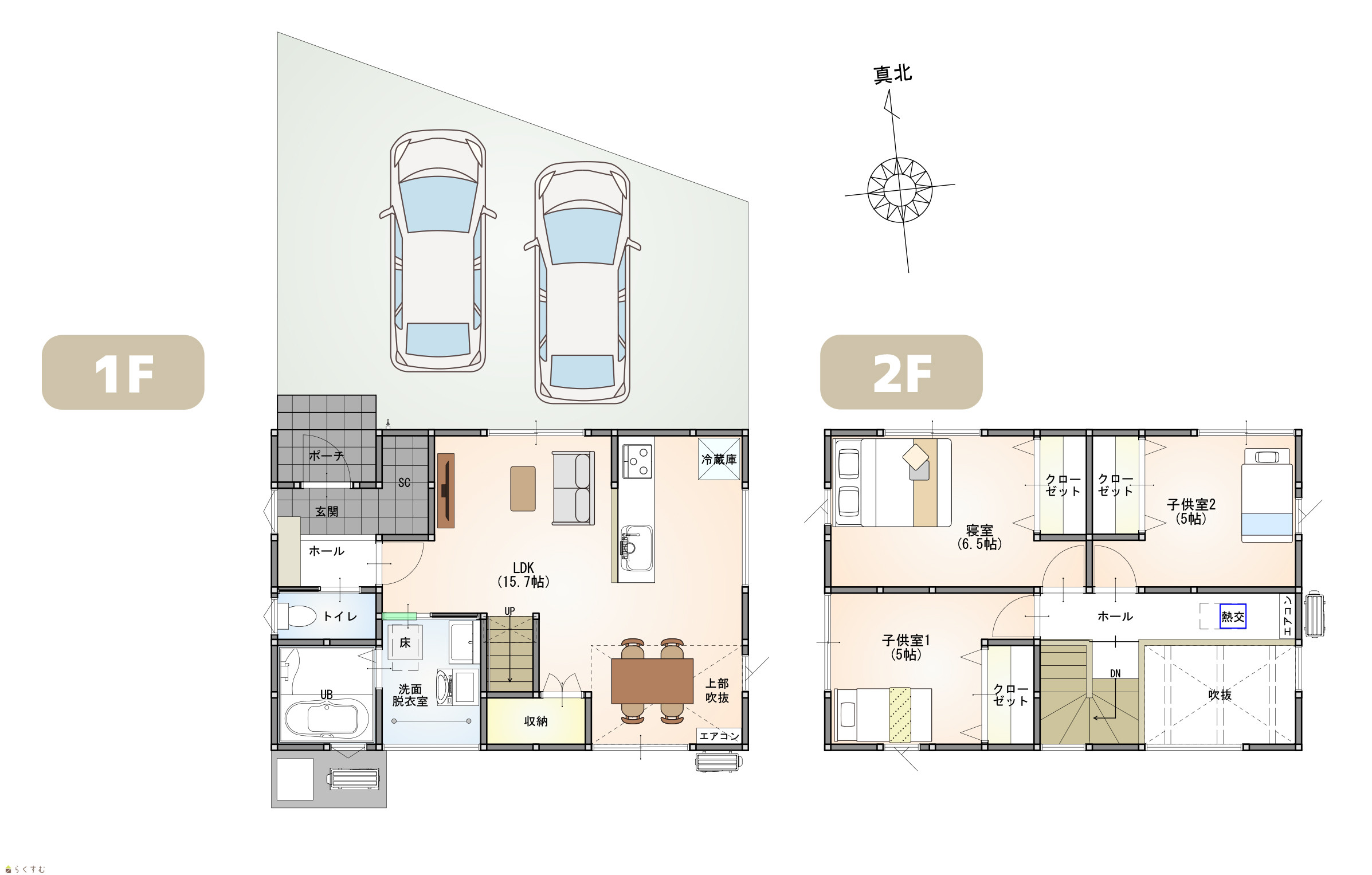 | 建物面積 | 1階 43.06㎡/ 2階 39.74㎡/ 計 82.8㎡ /25.04坪 | ||