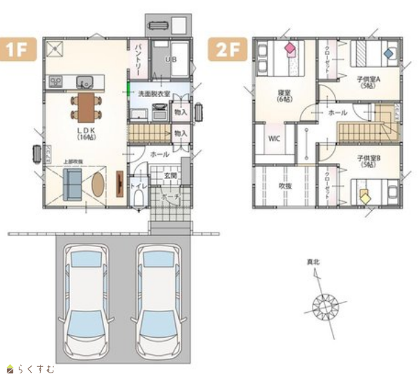 | 建物面積 | 1階 44.71㎡/ 2階 39.74㎡/ 計 84.45㎡ /25.54坪 | ||