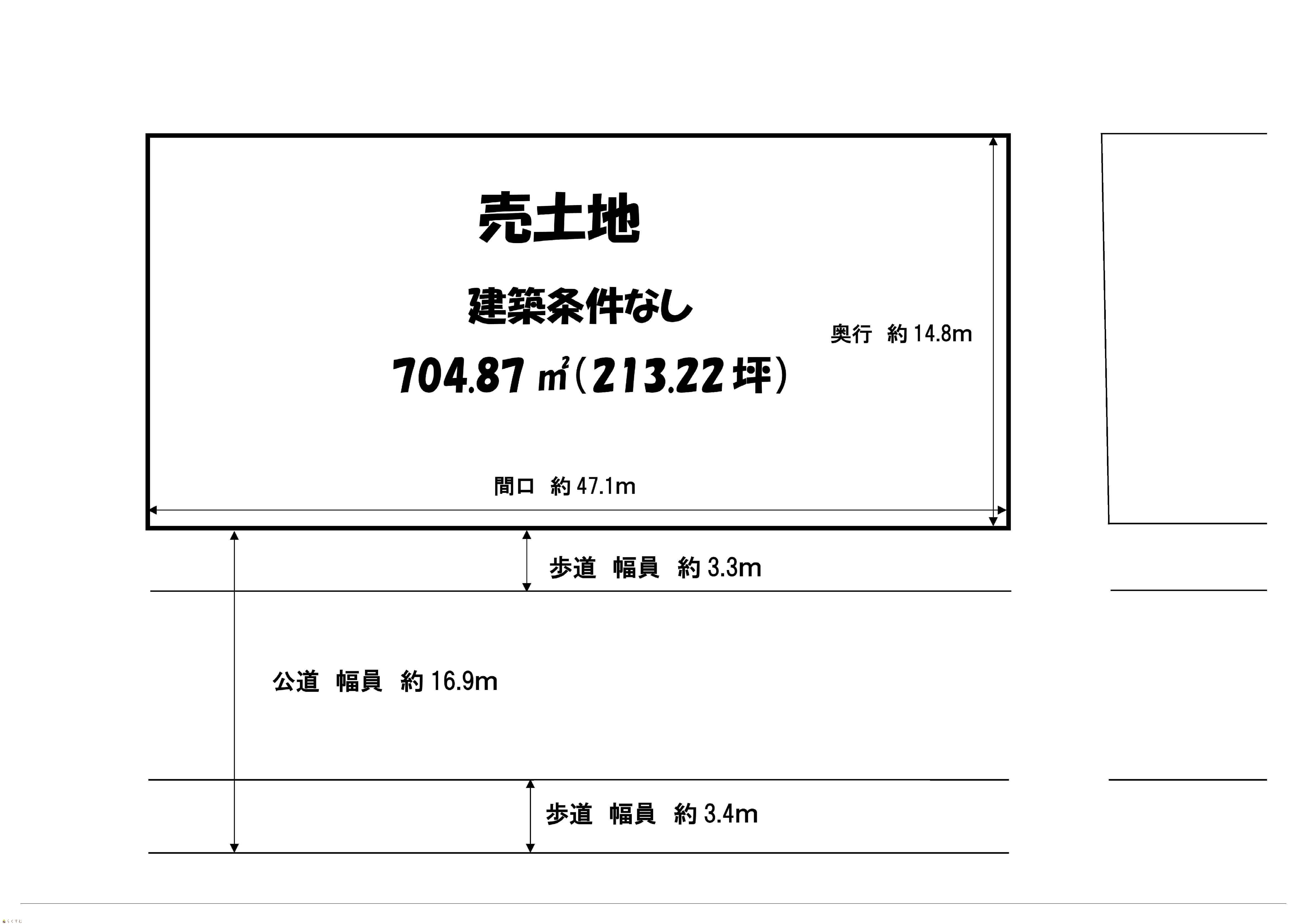 | 形状 | 間口 47.1m × 奥行 14.8m | 道路 | - |