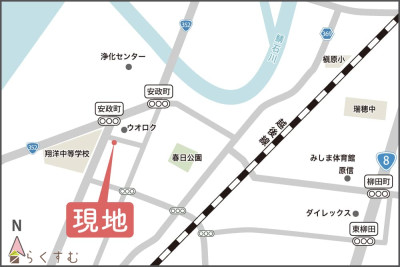 | 設備 | スーパー近く、システムキッチン、ガスコンロ設置可能、バス1坪以上、都市ガス、上水道、下水道、即引き渡し可能 | ||