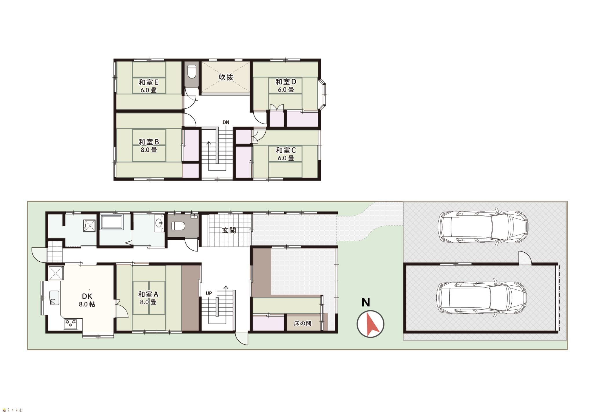 5DK (和室:8畳、8畳、6畳、6畳、6畳) DK8 |
