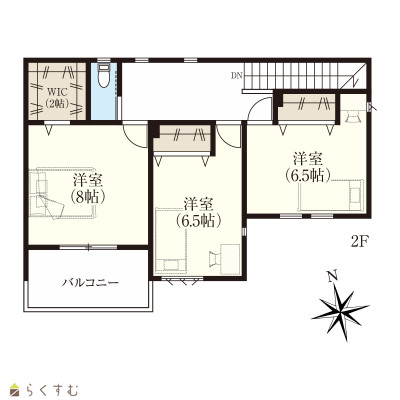 3LDK (洋室:8、6.5、6.5) LDK19.5 |