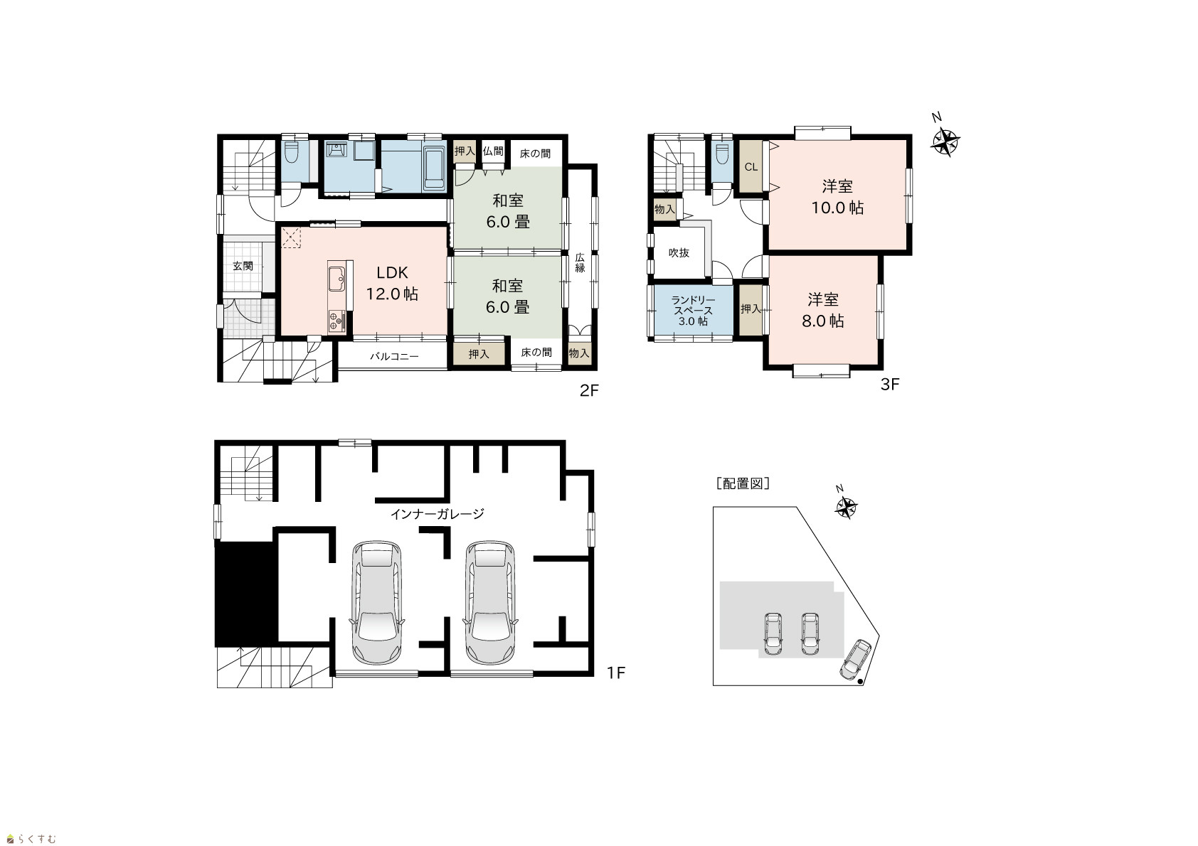 | その他面積 | 76.17㎡ /23.04坪 インナーガレージ(建物面積202.02㎡に含む) | 駐車場 | - |