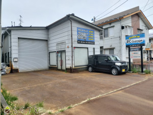 県道498号線(長岡中之島見附線)沿い、土地約301坪、工場約135坪、ほかに約17坪の倉庫有。現中古車販売店