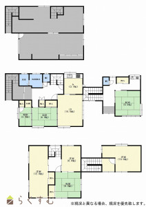 栄町6LDK!建物面積50坪越えの広々とした住宅です!玄関二ヶ所・キッチン二ヶ所で二世帯住宅としてもご使用いただけます!クスリのアオキまで徒歩約4分