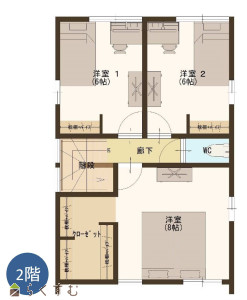 土地面積は54坪と丁度よい広さです。若干の畑やガーデニングスペースも確保できます。 2階洋室8帖には3帖のウォークインクローゼットあり♪ 1階・2階ともトイレが設置されています。
