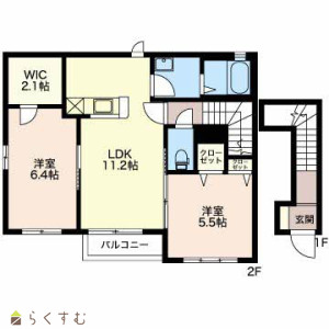 2LDK (洋室:6.4、5.5)、LDK11.2