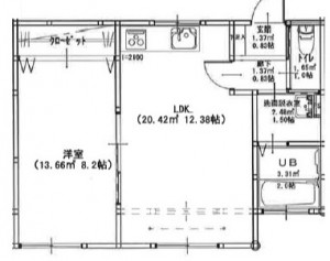 1LDK (洋室:8.2)、LDK12.38
