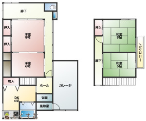 4DK (和室:8畳、6畳) (洋室:8、6)