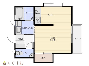 1DK (洋室:6)、キッチン+ダイニング:4帖/バストイレ別/洗面脱衣室あり