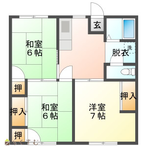 3DK (和室:6畳、6畳) (洋室:7)、DK6