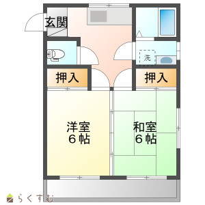2DK (和室:6畳) (洋室:6)、DK6